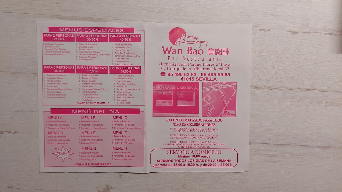 Welcome to Wan Bao, the gem of Chinese cuisine nestled in Sevilla. Known for its generous portions and vibrant flavors, Wan Bao stands out among the myriad of options in the city. Located at C. Cortijo de la Albarrana, 31, this restaurant offers an enticing menu that promises to tantalize your taste buds.